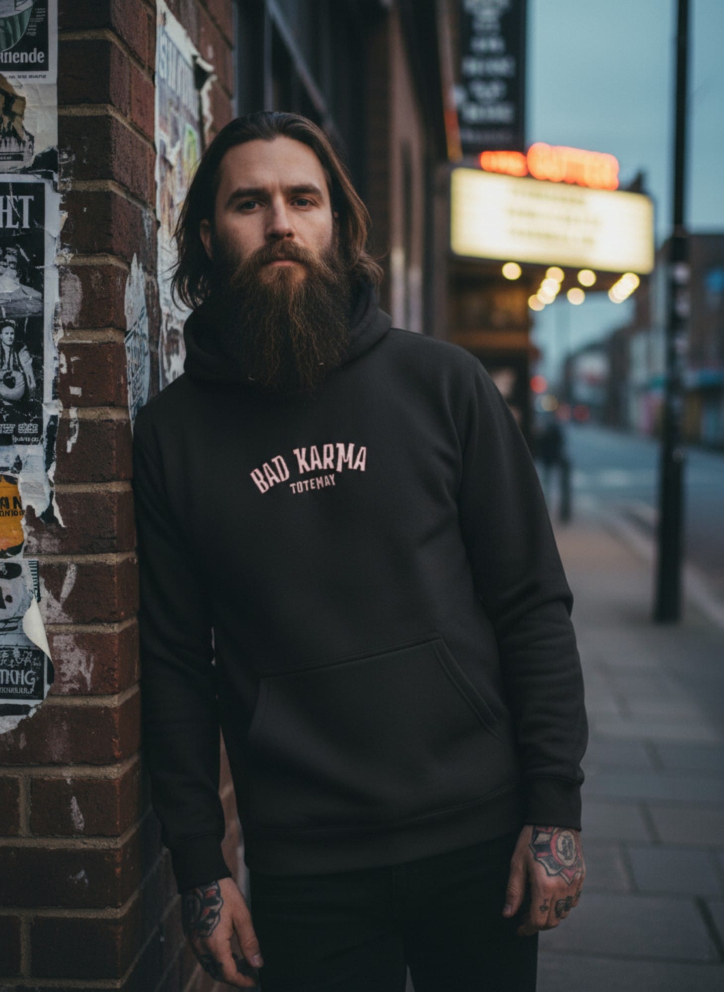 Bold tattoo graphics, everyday street attitude.